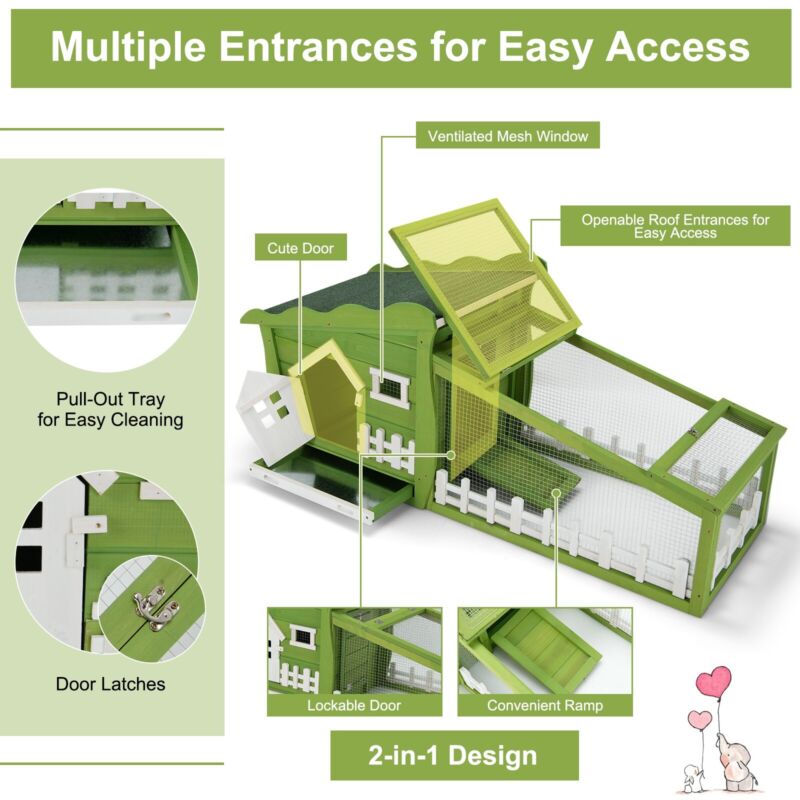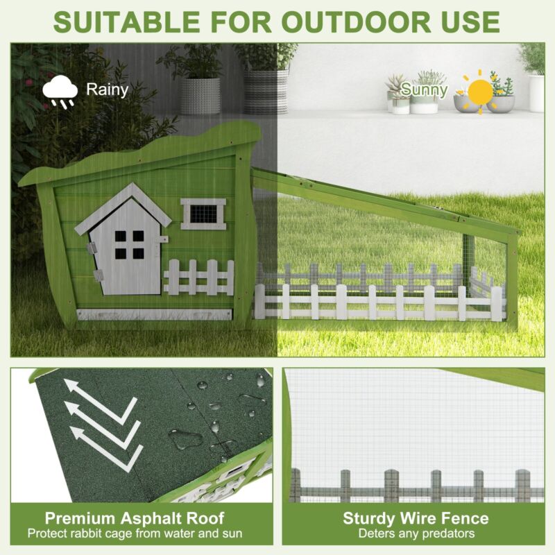 Wooden Rabbit Hutch Indoor Outdoor Chicken Coop Pet Cage House w/ Asphalt Roof