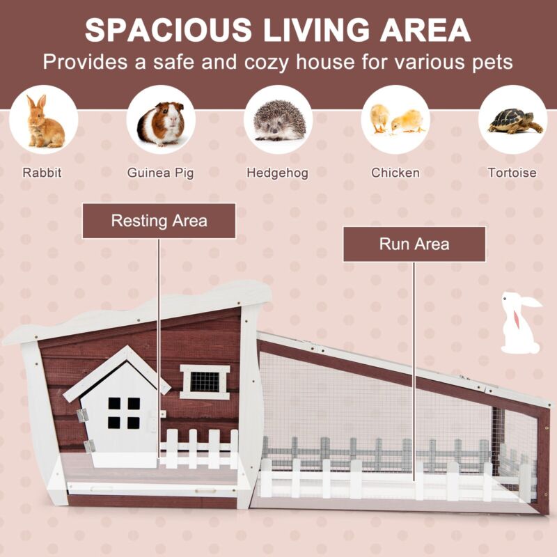 Wooden Rabbit Hutch Indoor Outdoor Chicken Coop Pet Cage House w/ Asphalt Roof