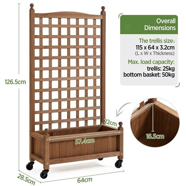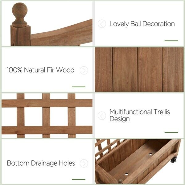 Wooden Raised Bed for Garden with Trellis Outdoor Planter Box for Greenhouse