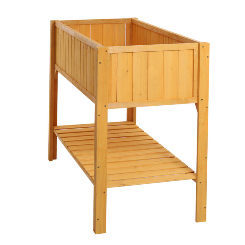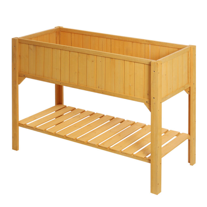 Wooden Raised Bed Planter Growing Box Flower Herb Trough Stand with Bottom Shelf