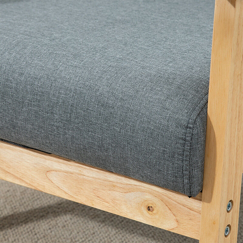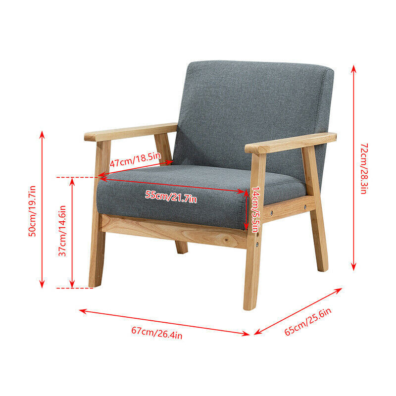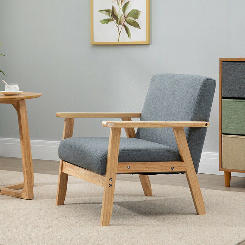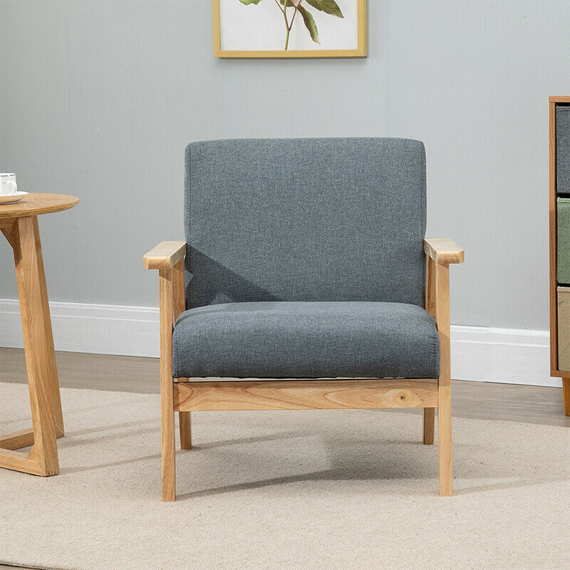 Wooden Single Seater Sofa Accent Chair Armchair Linen Fabric Living Room Grey