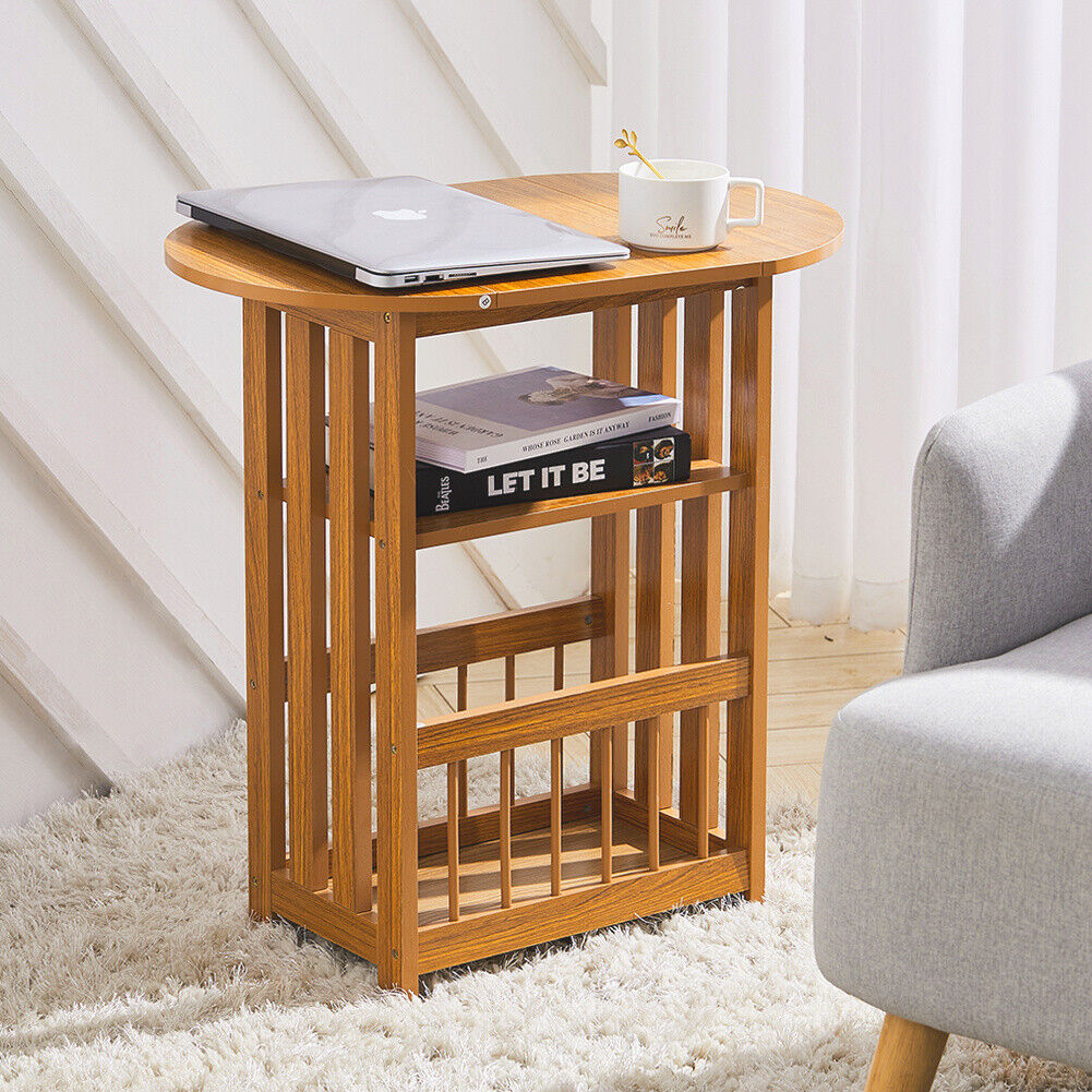 Wooden Sofa Side Coffee Table w/ Storage Shelf Rack Foldable Tabletop Lamp Table