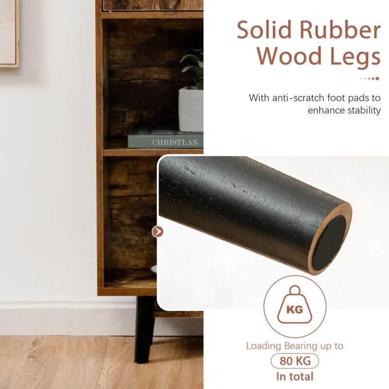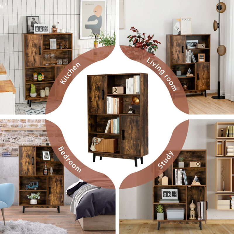 Wooden Storage Cabinet 4-Tier Bookshelf Cupboard Tall Sideboard Display Rack