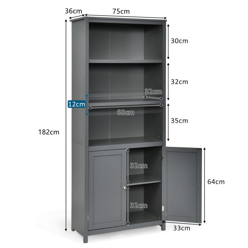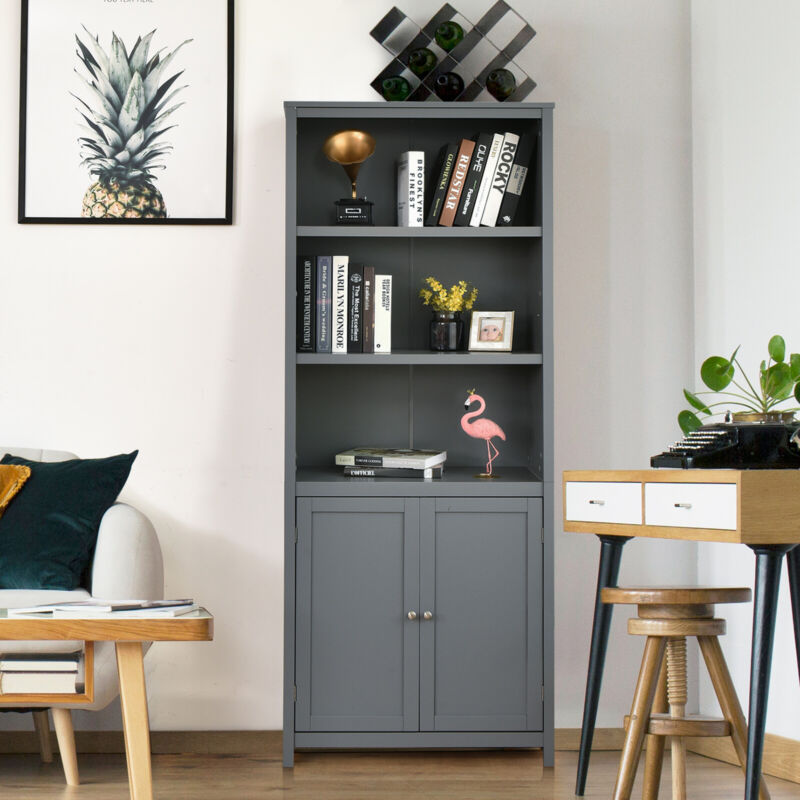 Wooden Tall Bookcase 3-Tier Shelving Storage Cabinet 2 Doors Display Organizer