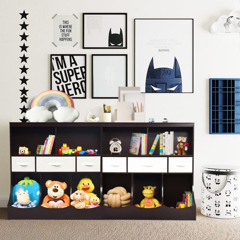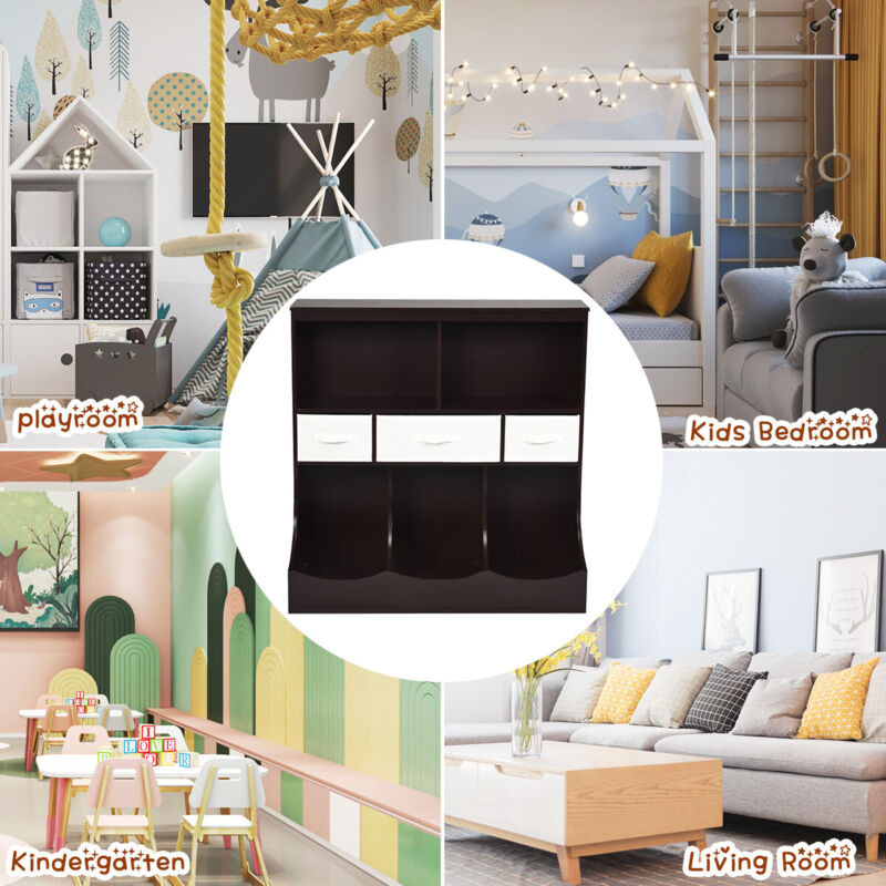 Wooden Toy Storage Cabinet Children 3-Tier Organizer Bookcase W/ 8 Open Cubes
