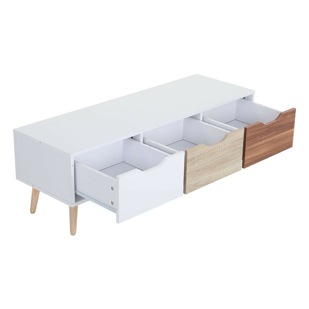Wooden TV Stand Storage Cabinet Unit Cupboards 3 Drawers Table w/ Wood Legs