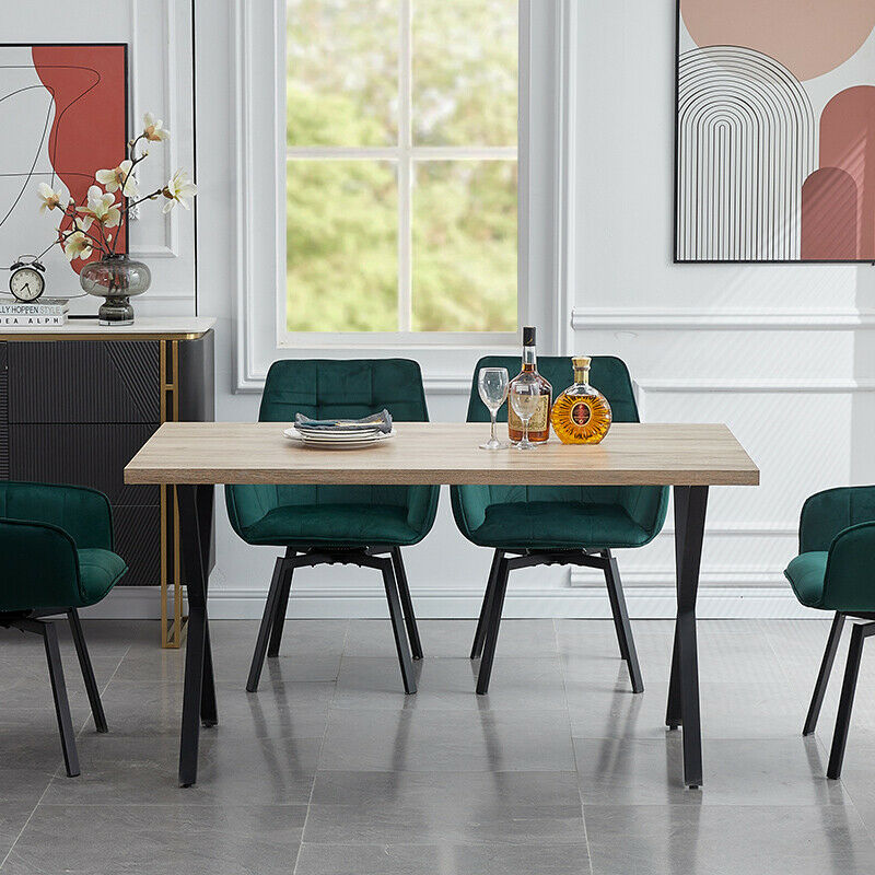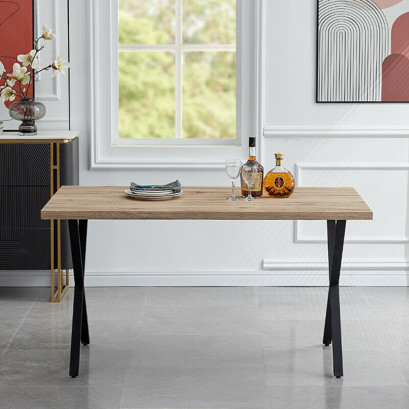 X-shaped Metal Support Legs Simple Dining Table Living Room Kitchen Rectangular