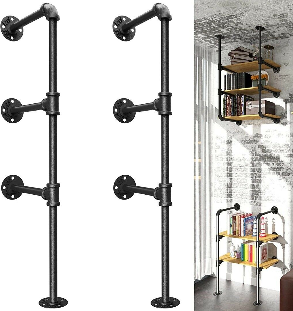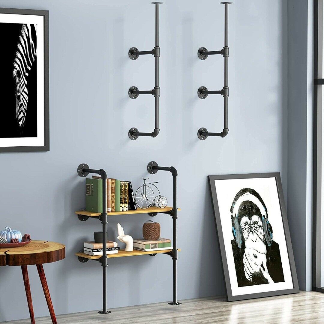 Metal Pipe Floating Shelf, Wall Mounted Industrial Hanging Storage Unit