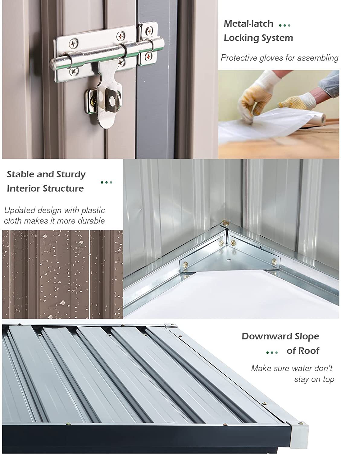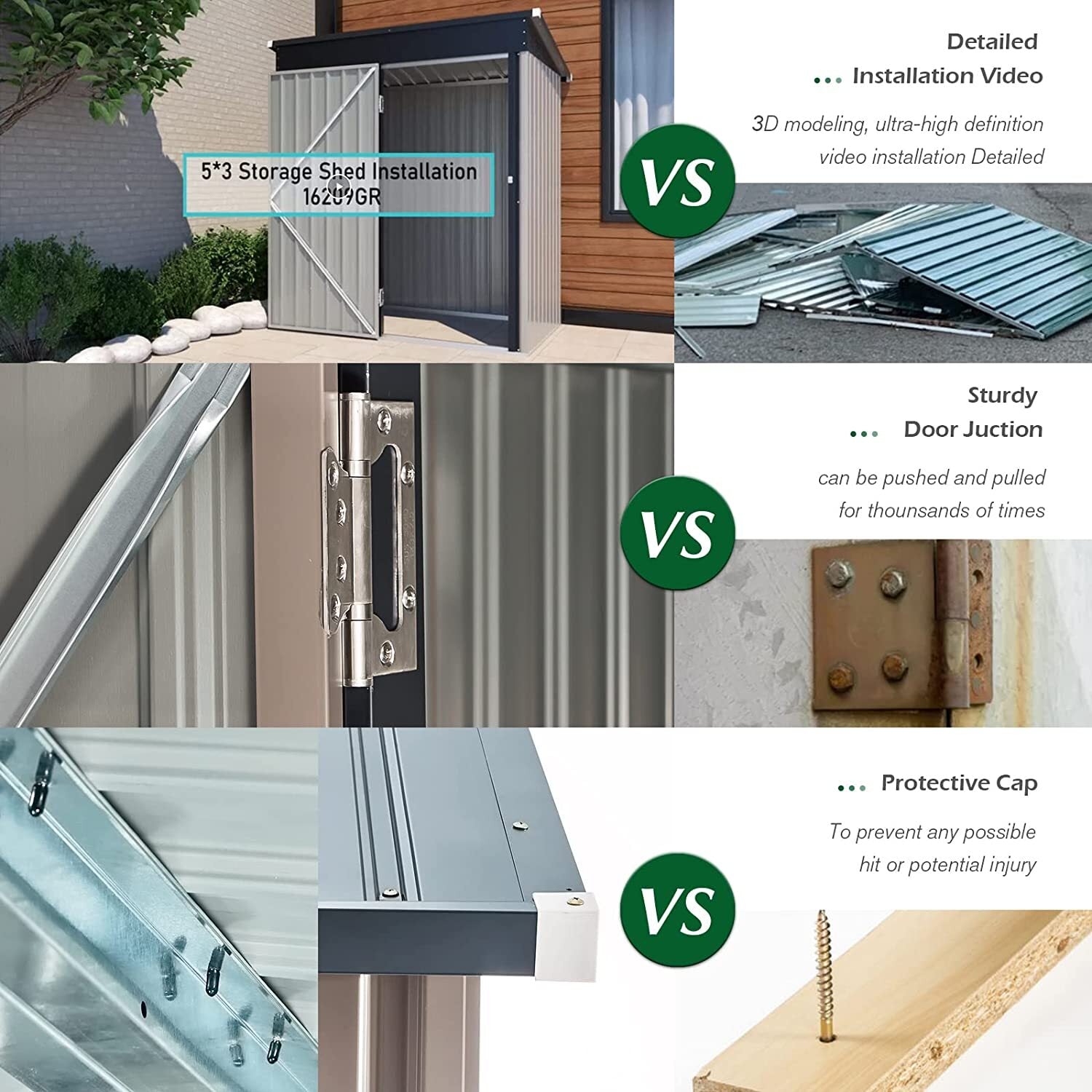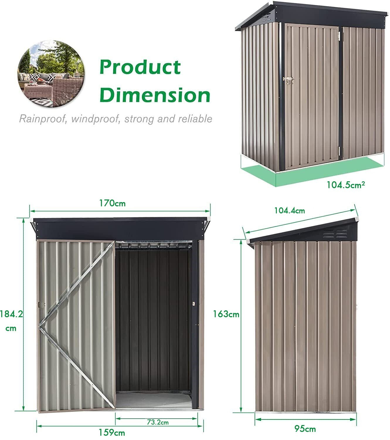 5x3ft Garden Storage Shed Metal Tool Shed Sloped Roof Lockable Door Grey