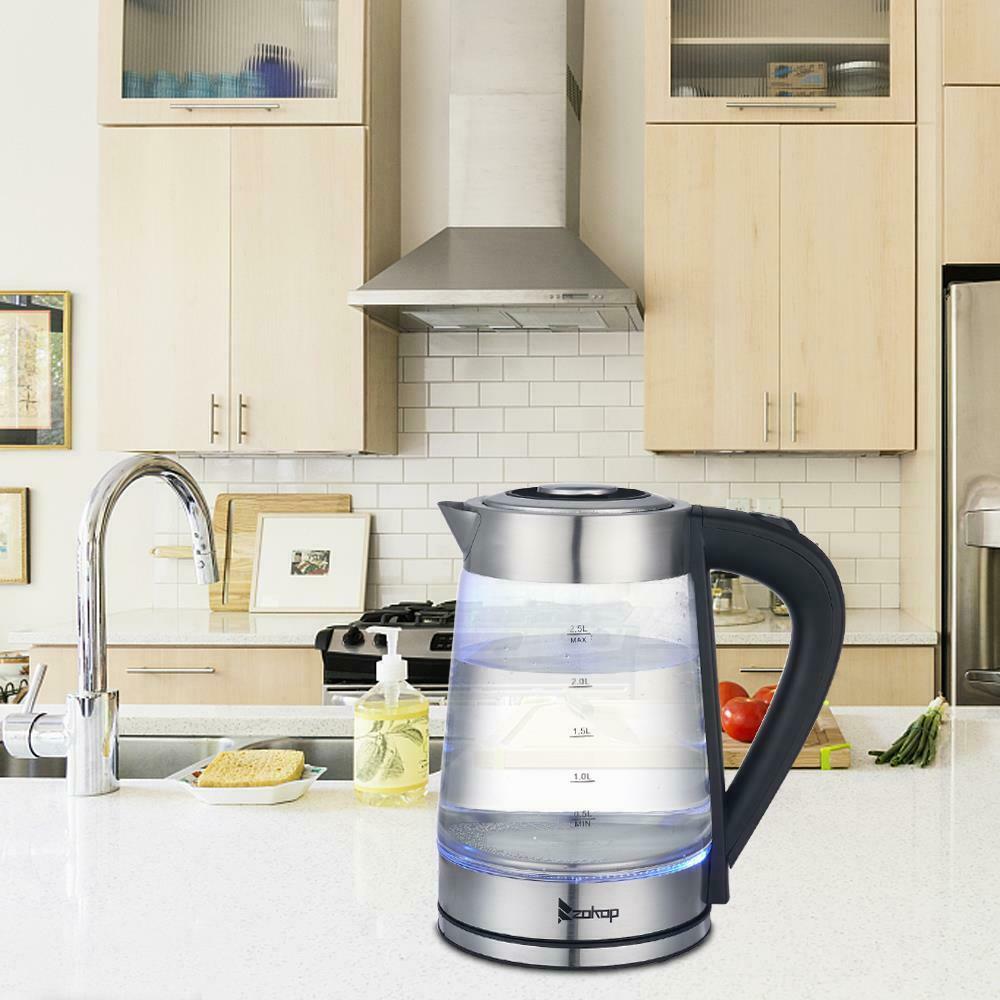 Blue Cordless LED Electric Illuminating Glass Kettle Jug 2.5L 2200w