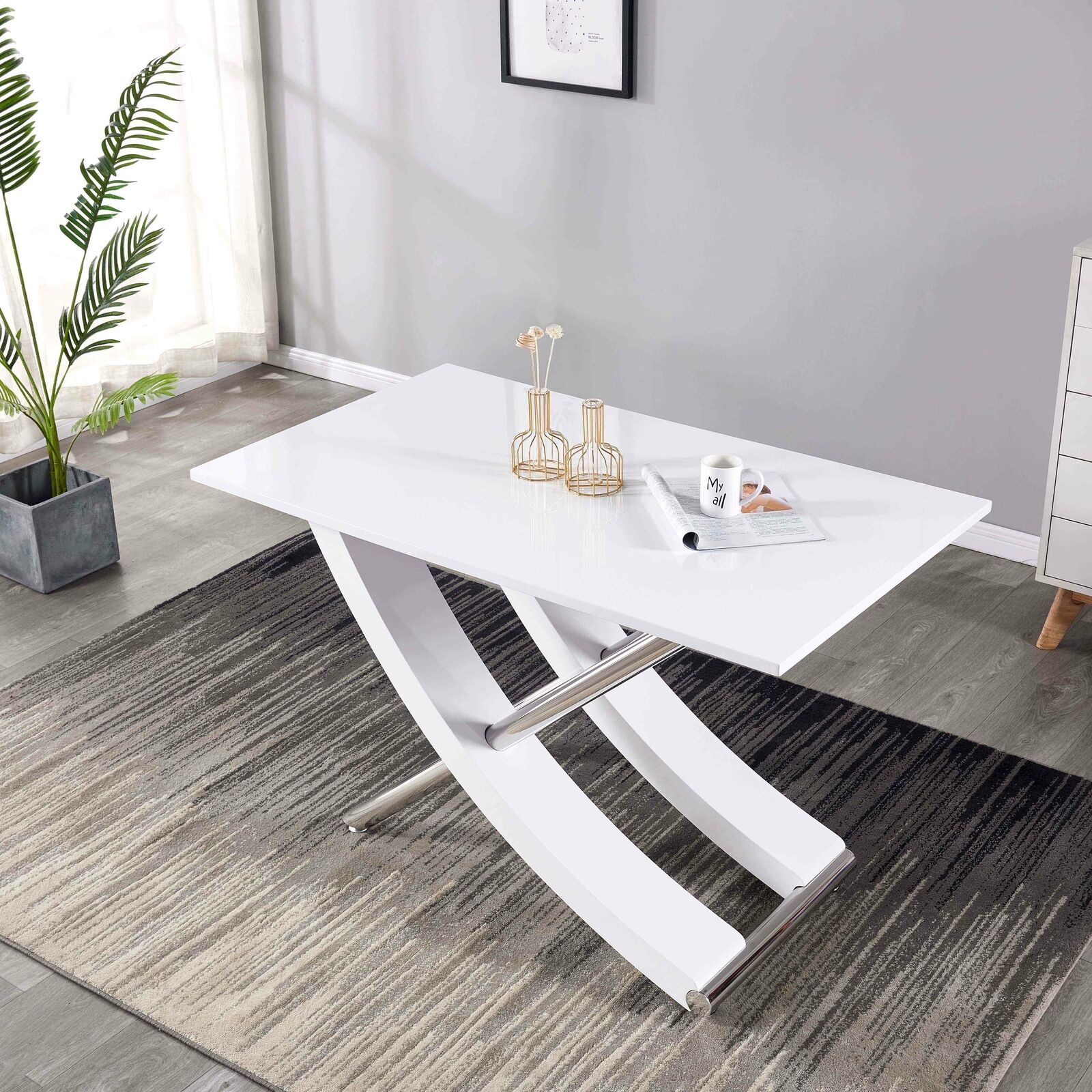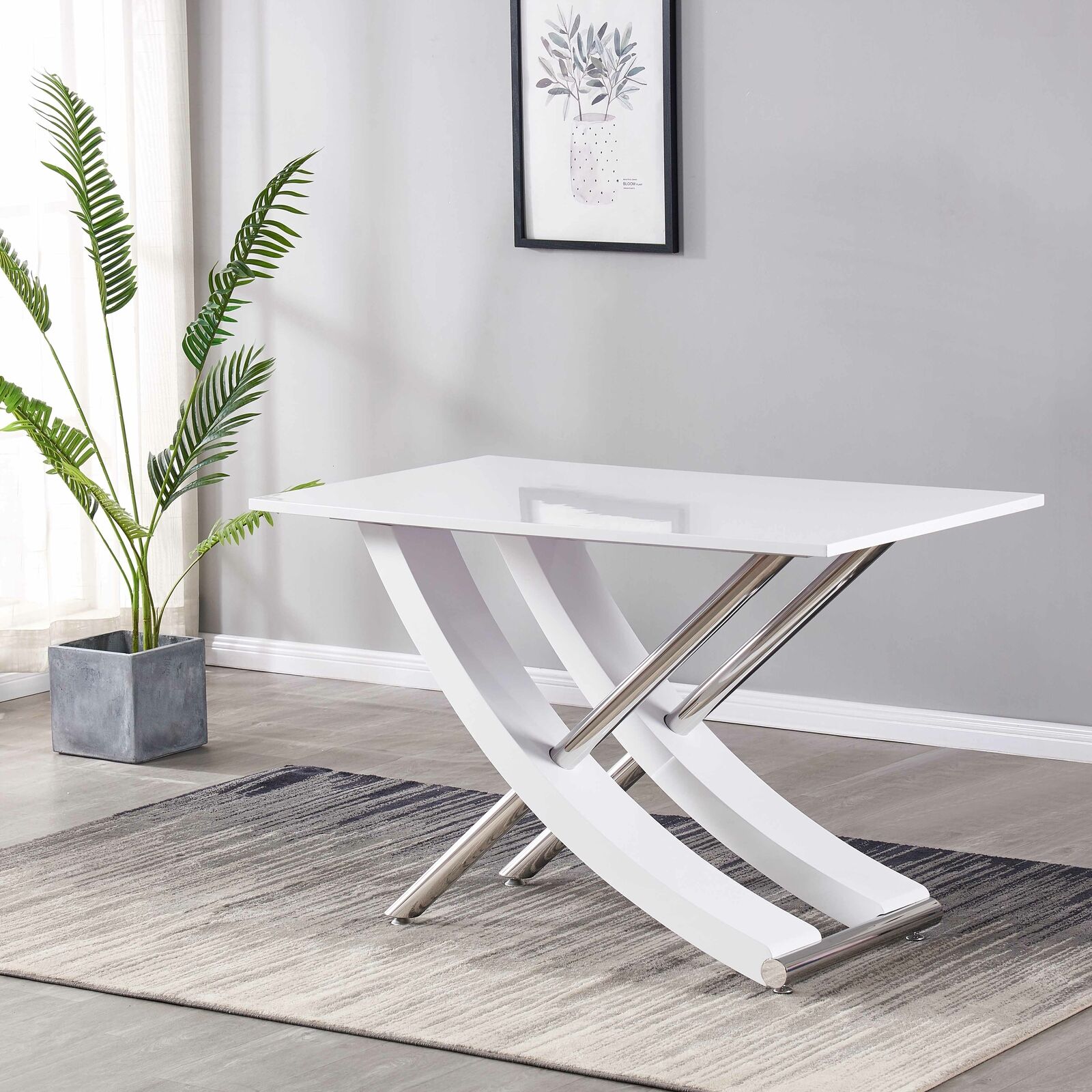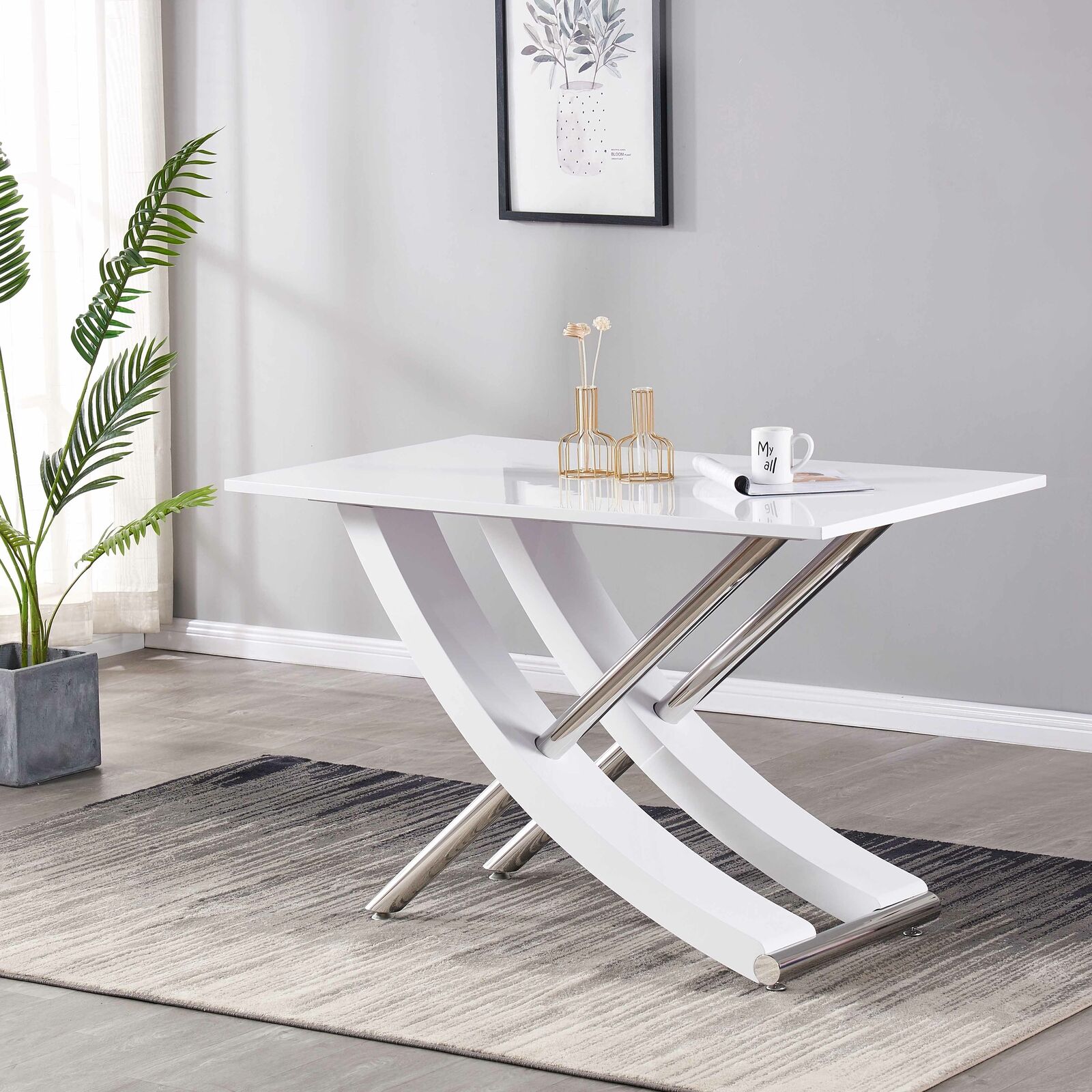 Luxury White High Gloss Chrome Dining Table Living Room Kitchen Furniture